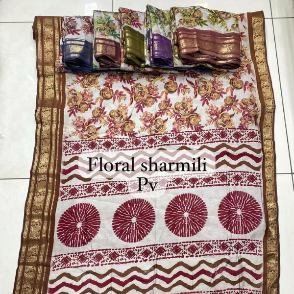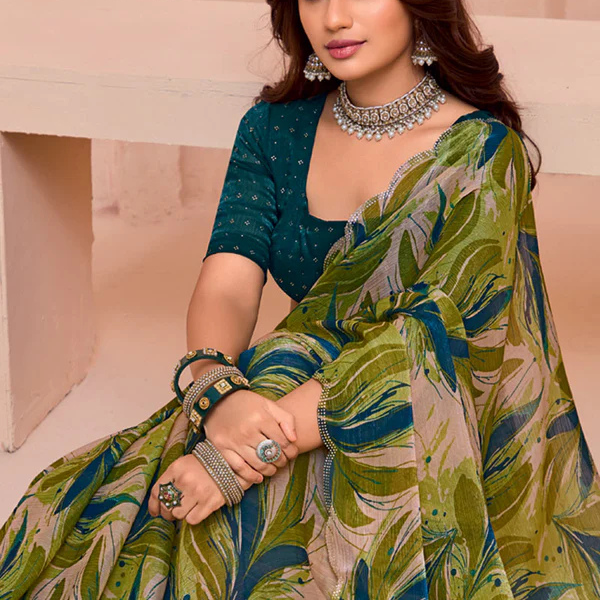Designed with beautiful printed motifs, it brings out a classy yet modern appeal that suits every occasion — from office gatherings to festive celebrations. The saree features a stylish border and comes with an unstitched matching blouse piece for your perfect customized fit.