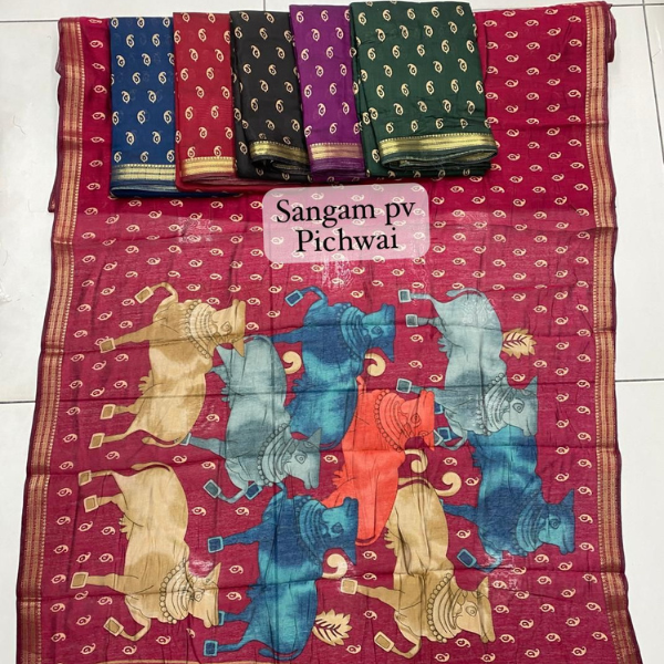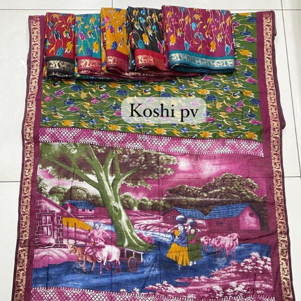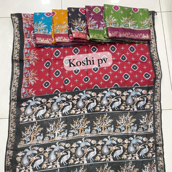 Celebrate your special moments with the Premium Chiffon Arjun Print Saree, featuring fine digital prints inspired by classic Arjun artistry. The smooth chiffon fabric gives a rich, elegant drape that flatters every silhouette.
