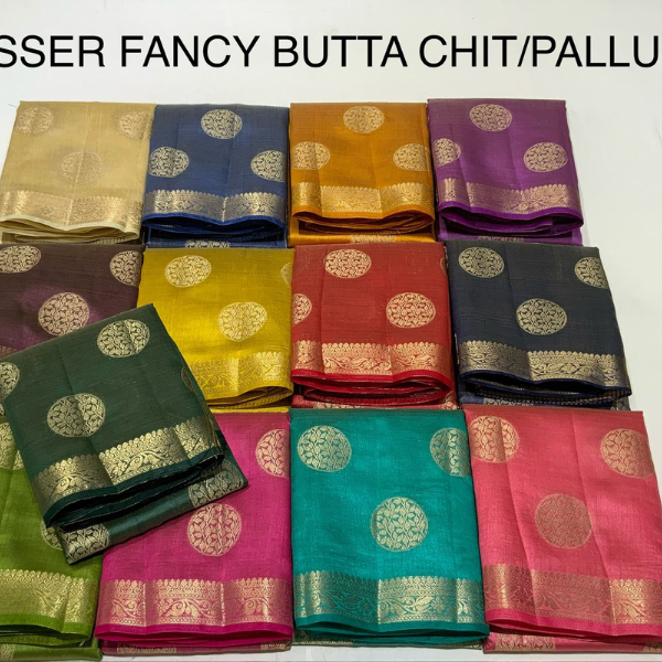 Elegant Tusser Silk Fancy Butta Saree with Designer Chit & Rich Pallu