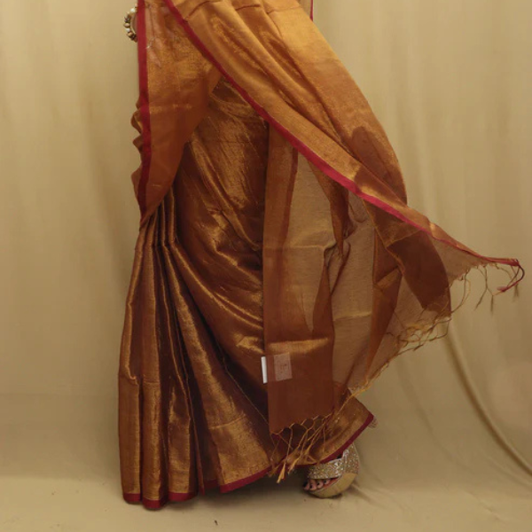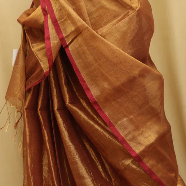 Exquisite Golden Bengal Plain Tissue Cotton Saree