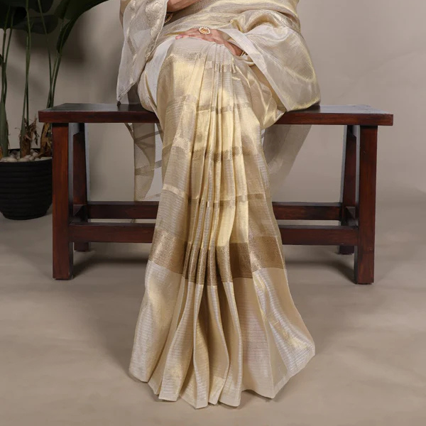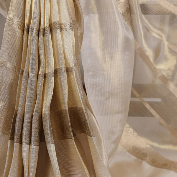 Gold Tissue Shimmer Zari Weaving Work Tissue Saree