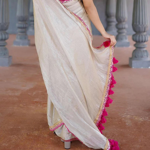 Pastel Grey Sequins Embroidered Jimmy Choo Tissue Saree With Tassels